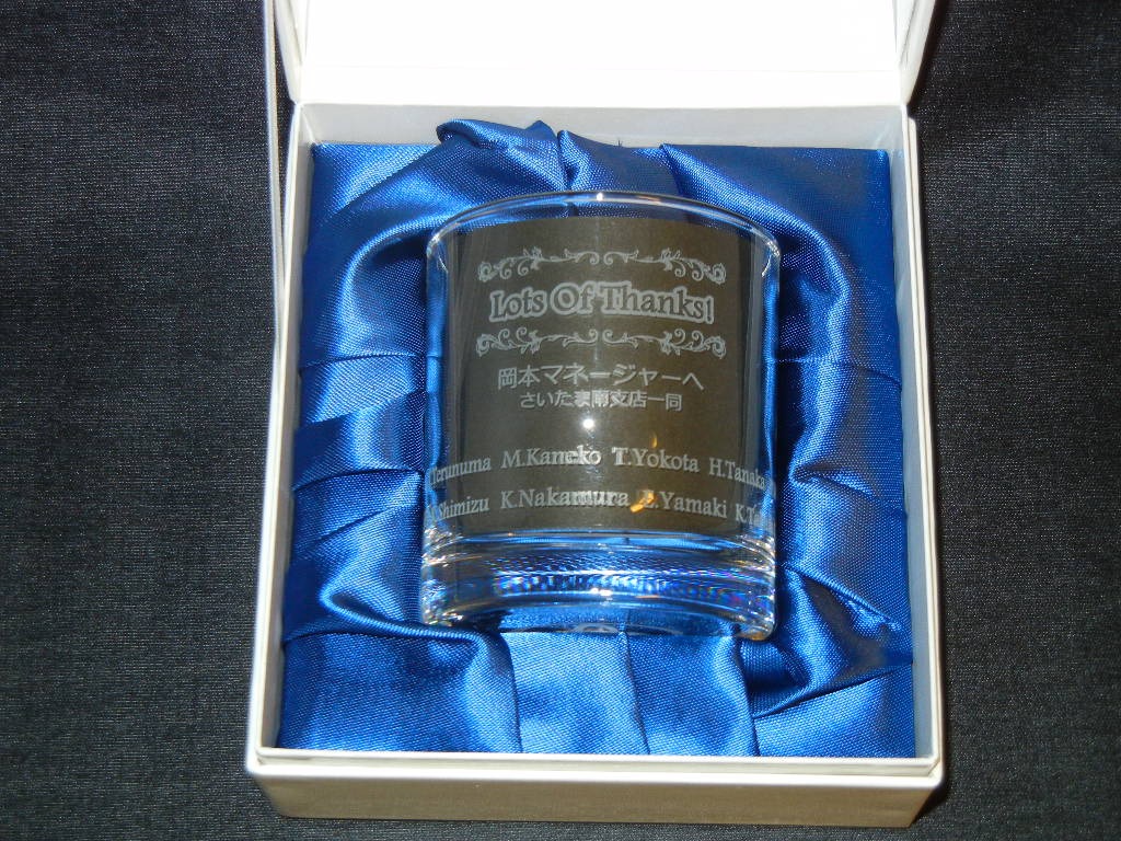 グループ名やメッセージ、記念日など彫刻可能です。豪華な化粧箱入