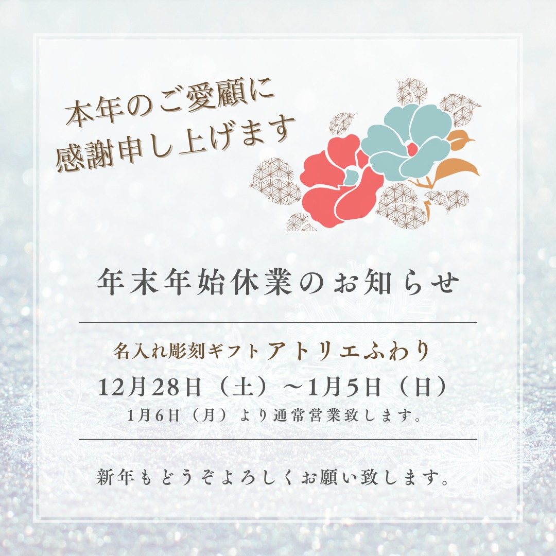 年末年始休業のお知らせ | 彫刻ギフト工房 ふわり【名入れ/メッセージ/写真彫刻】